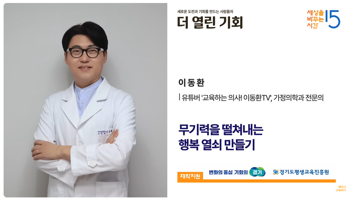 우리 모두는 때때로 무기력함에 빠질 때가 있습니다. 이럴 때 행복을 다시 찾는 방법은 무엇일까요? 가정의학과 전문의 이동환 박사는 강연을 통해 삶에 활력을 더하고 무기력을 극복할 수 있는 방법을 제시했습니다. 오늘은 그의 강연 내용을 바탕으로 행복의 열쇠를 찾는 법에 대해 알아보겠습니다.