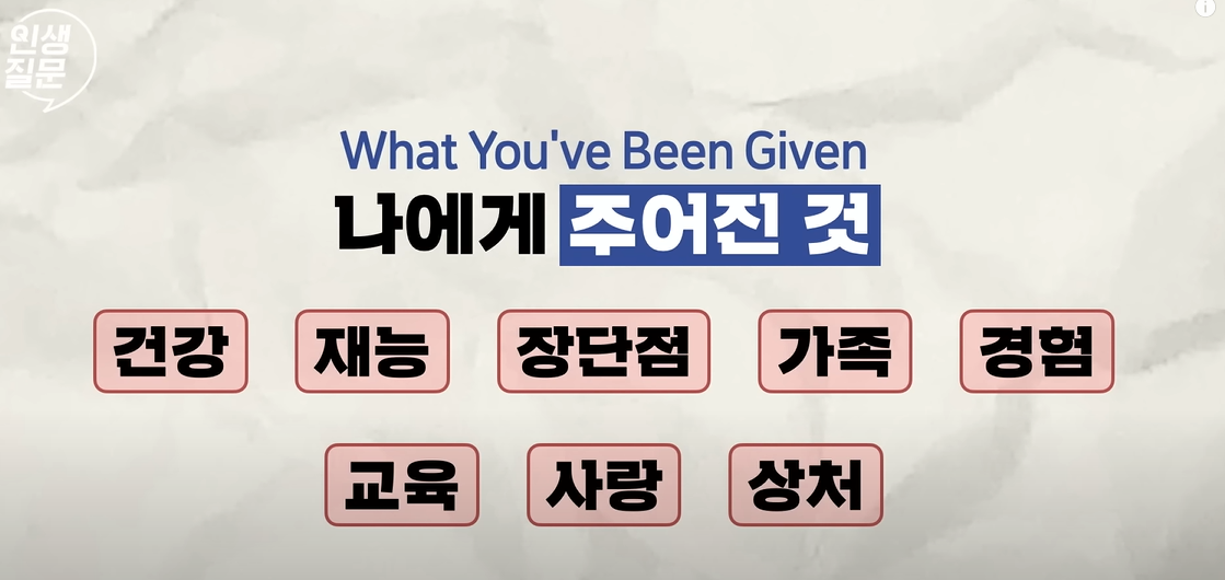 - “내가 사랑하거나 열정을 느끼는 일은 무엇인가?”