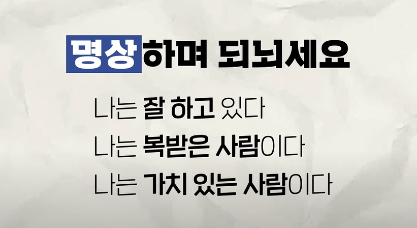 - “나는 복받은 사람이다”, “나는 가치 있는 사람이다”라는 긍정적인 말을 명상 중에 반복해 보세요.