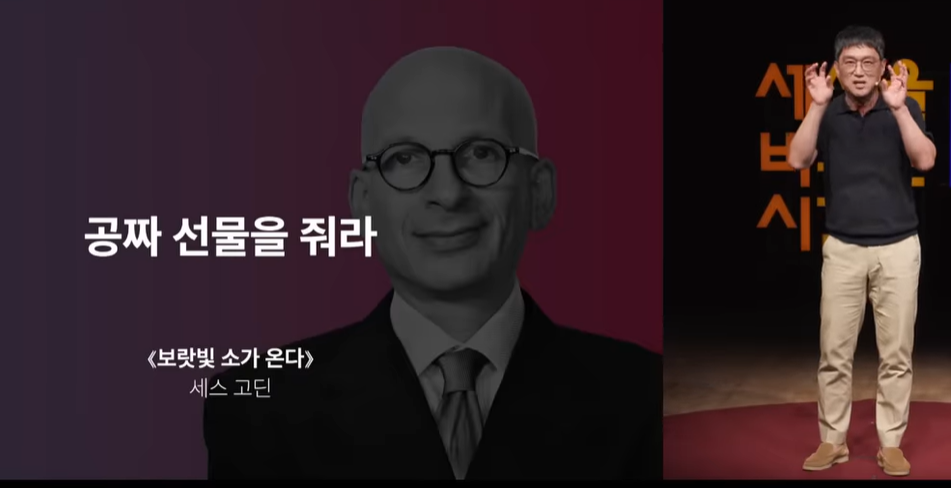 고명환은 성공적인 마케팅의 비결로 "공짜를 줘라"라는 세스 고딘의 철학을 예로 듭니다. 그는 자신이 운영하던 메밀 국수집에서 매일 아침 무료 강연을 열었습니다. 이 강연을 통해 사람들에게 자신의 철학과 정성을 전달했고, 결국 국수집의 매출이 자연스럽게 증가했습니다.