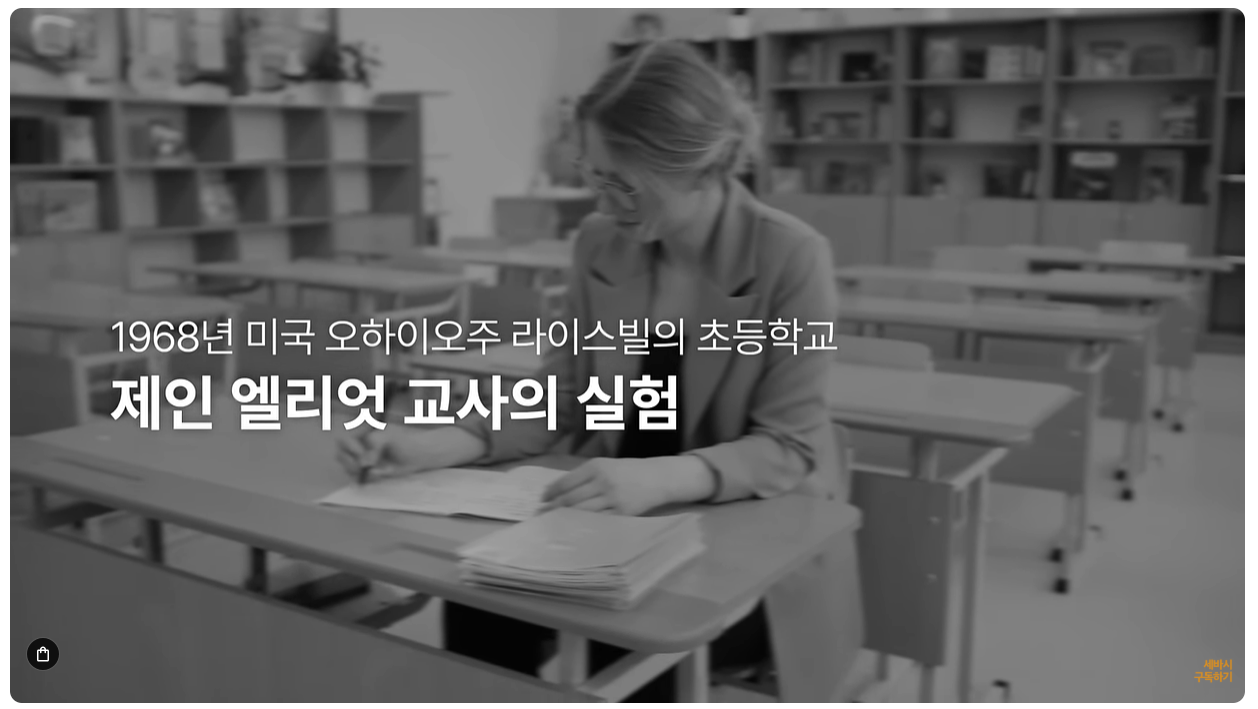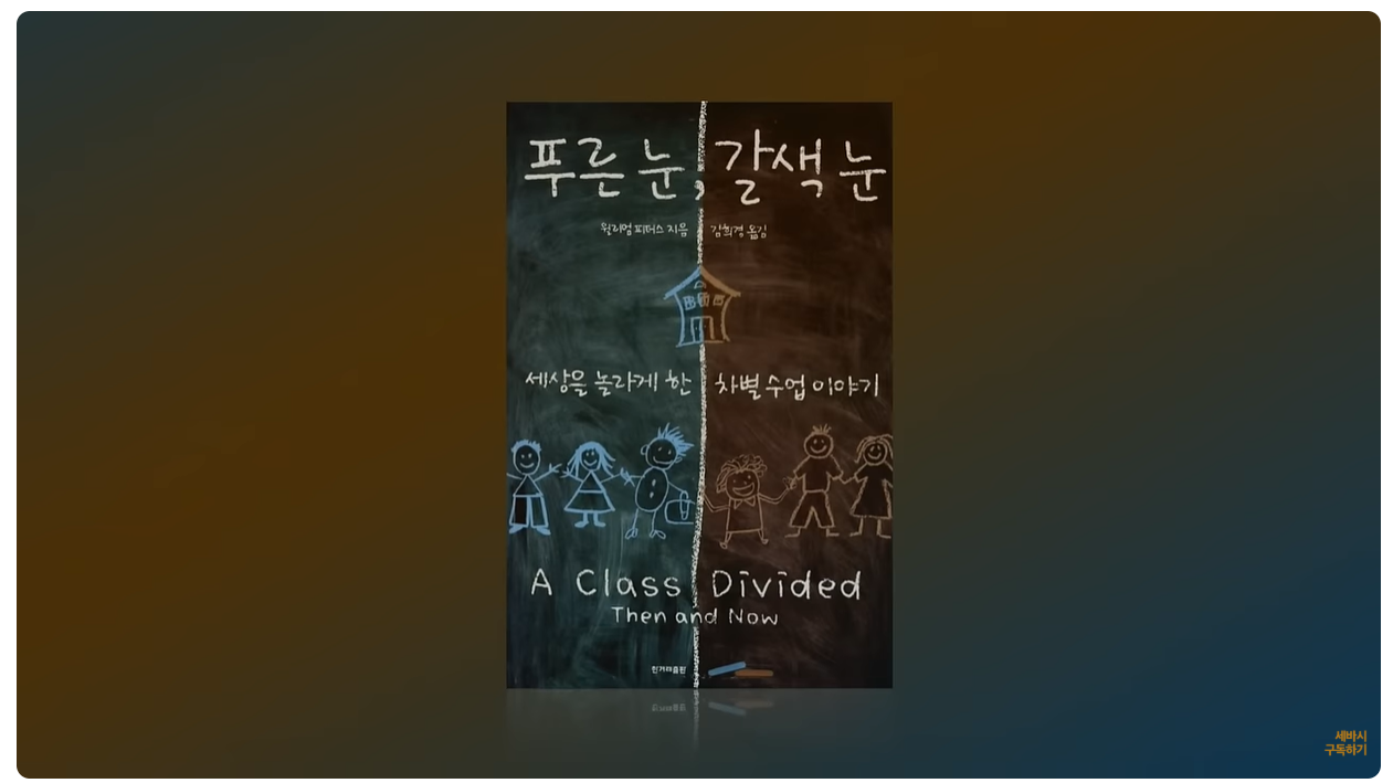 마틴 루터 킹 사망 이후 진행된 제인 엘리엇의 ‘푸른 눈 vs 갈색 눈’ 실험을 통해, ‘다름’으로 인해 차별이 발생하는 메커니즘을 설명합니다.