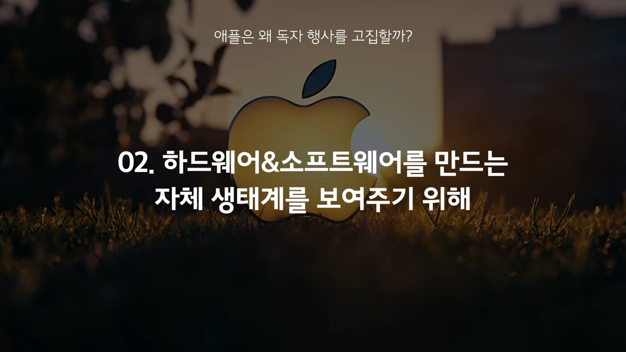 - 자체 생태계 구축 – 고객과 개발자에게 애플만의 통합된 경험 제공.