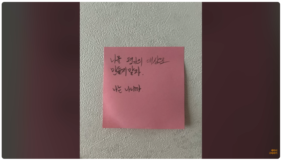 - "나를 평가의 대상으로 만들지 말자"는 메시지를 마음에 새기세요.