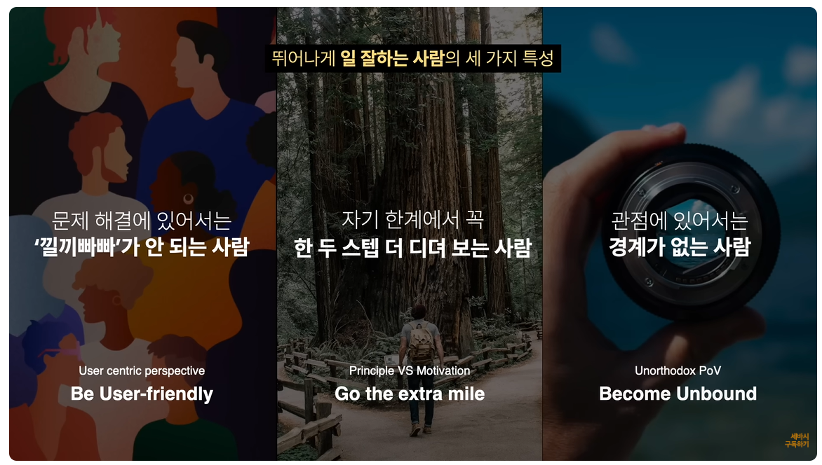 조용민 님은 새로운 강연에서 뛰어나게 일 잘하는 사람들의 3가지 핵심 특성을 공유했습니다. 이 특성들은 개인의 성공뿐 아니라 조직의 성과에도 큰 영향을 미칩니다.