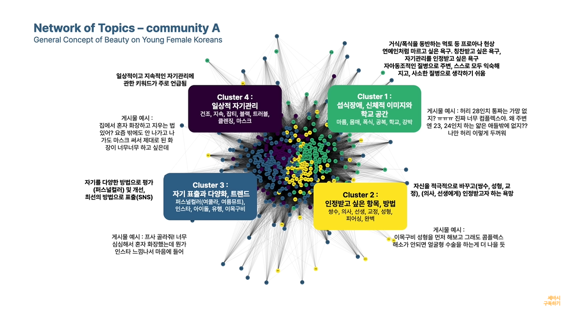 카이스트 문화기술대학원에서 진행한 연구에 따르면, 청소년들은 외모를 가꾸는 행동을 통해 자신의 자존감을 확인하고자 합니다. 분석한 183만 개의 온라인 게시글과 2100만 개의 단어 데이터를 통해 다음과 같은 세 가지 핵심 요인이 도출되었습니다: